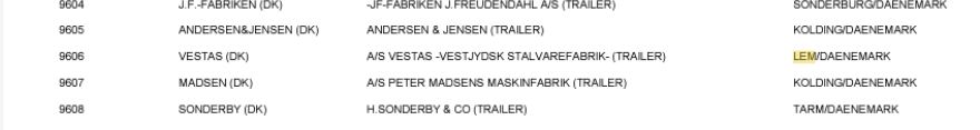 Die Firma Vestas ist die Schlüsselnummer 9606 zugeordnet und hat ihren Sitz in Lem (Dänemark). Der Anhänger sollte sich in folgender Datei wiederfinden: