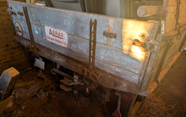 Der zweite blieb bis zum Schluss auf dem Hof – untergestellt in der Scheune. Bis vor Kurzem war ich der Meinung, dass der Anhänger in Uelzen gefertigt wurde…